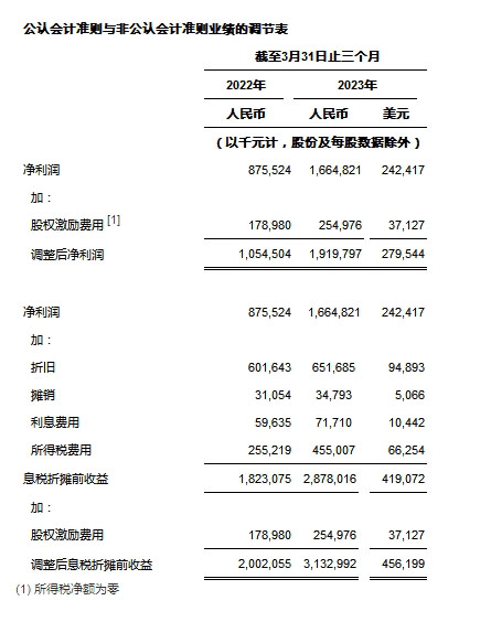 ? 歸屬于普通股股東的調整后基本及攤薄每股美國存托股收益[5]為人民幣2.38元(0.35美元)及人民幣2.33元(0.34美元),較2022年同期的人民幣1.34元及人民幣1.34元分別增長77.6%及73.9%。