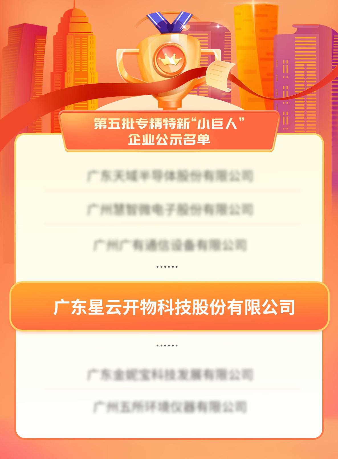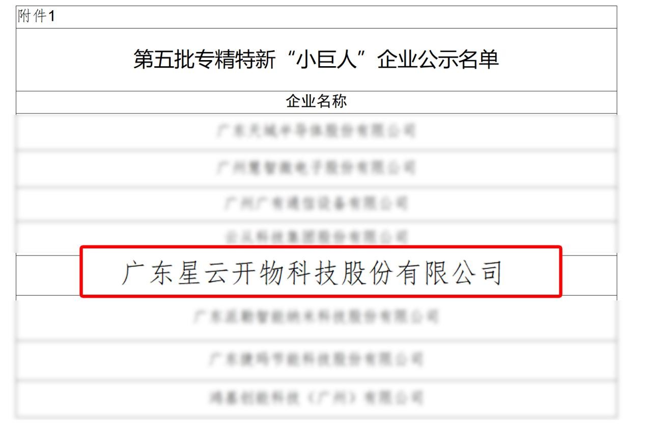 ? ? 7月14日,國家工信部發布了《關于廣東省第五批專精特新“小巨人”企業和第二批專精特新“小巨人”復核通過企業名單的公示》,廣東「星云開物」科技股份有限公司以優異的綜合實力成功入選,榮列2023年國家級第五批專精特新“小巨人”企業公示名單。
