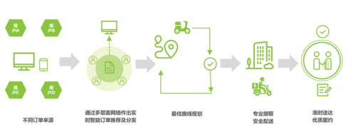 成為獨立的第三方配送商 ?,通常要有強大可靠的運力保障以及穩定的項目資金支持。因此目前在該賽道的廠商們一種是從傳統的快遞運輸服務業拆分的分支業務 ?,典型代表如順豐同城。另一種是入局較早已搶占好市場先機的互聯網公司, ?典型代表如閃送、達達等。這樣的第三方平臺自建了內部訂單調度系統 ?,如順豐同城的CLS城市物流系統,可以對前端不通的渠道來源訂單進行融合,實時調度周邊運力,為騎手智能規劃取貨路徑,實現運力跟蹤和監管。