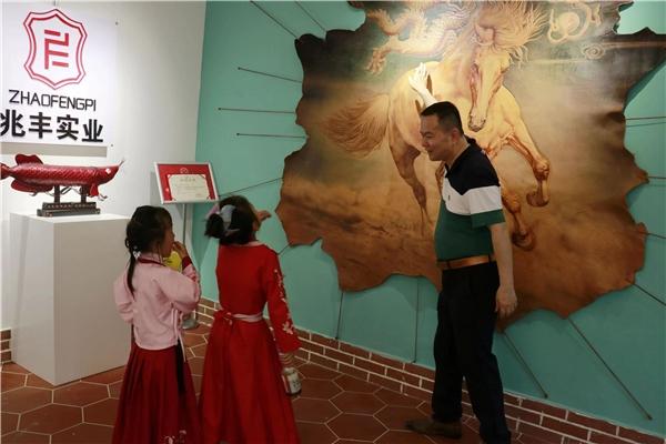 在300多平米店鋪,向人們展示皮雕文化起源,皮雕藝術發展、皮雕材質應用、皮雕文創產品,皮雕體驗等,亮相人們視野,仿佛走進皮雕博物館,其中巨幅紅色皮雕文化作品《新征程、再出發》、《江山永固》、《氣壯山河》等引人矚目,令人贊嘆不已。