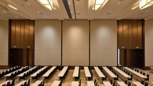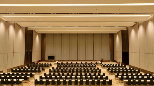 三層宴會廳,承載接待宴會等需求,通高的高大隔斷分布中間,能將宴會廳分割為兩個獨立的空間,方便靈活使用。