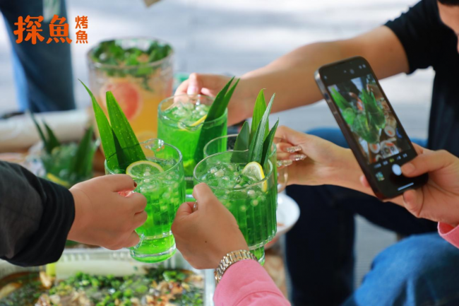 本次探魚露營品鑒會,探魚準備了四月推出的新品——鮮青椒蔥蔥烤魚。新鮮的紅蔥搭配整根新鮮大蔥,讓香蔥+藤椒味型的鮮青椒蔥蔥烤魚爽麻加蔥香雙重過癮;搭配系列新品現場體驗十分豐富:活力滿滿的飲品斑斕的綠,搗搗搗釋放壓力的小吃牛油果擂椒皮蛋,和口感脆爽治愈的輔菜鮮箭筍。品鑒會更設置了可以無限續加的自助暢飲區,大好春光環繞之下,到場嘉賓沉浸式體驗到美食品鑒之樂,新產品獲得大家一致喜愛,紛紛拍照打卡,解鎖探魚露營美食之旅。