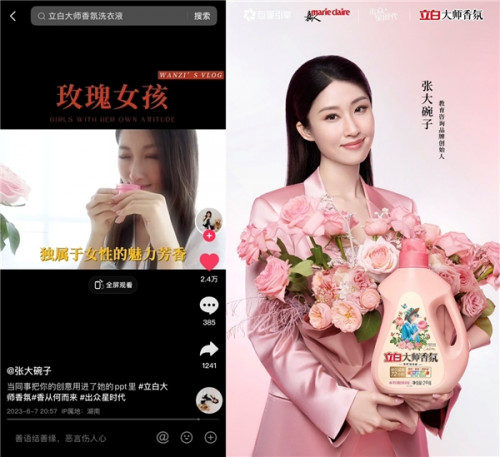 再加上與時尚媒體《嘉人》的合作,使得立白大師香氛品牌和抖音頭部達人都獲得了更為有力的時尚背書。