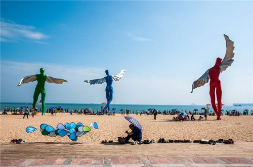 傳聞設計團隊來此踩點時,蹦到腦海中的詞匯就是“守護愿望”“許愿”。面對碧海藍天、金色沙灘,藝術家們產生守護愿望的強烈心里感受。學生時代的夢想、為愛情許下的甜蜜愿望、奮斗征程的豪情壯志等零碎畫面,在內心不斷閃回。藝術家用敏銳的感受,建造了愿望塔和守護愿望的七個天使。七個天使象征著自由、包容、勇氣、和平、智慧等,鼓勵年輕人勇敢追求夢想,追逐幸福生活,實現愿望。