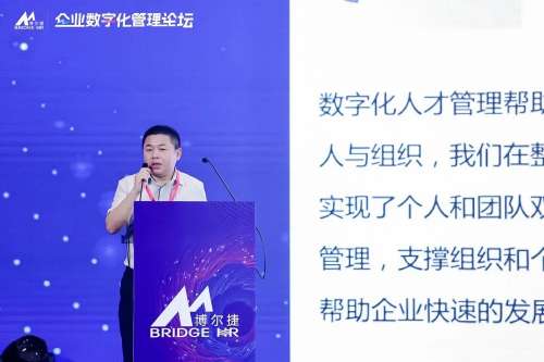 侯博士以2019年與中歐國際工商學院的忻榕教授、阿里巴巴產業互聯網中心主任陳威如教授歷經兩年共同創作的《平臺化管理》一書作為理論指導,以及多年人力資源行業經驗的沉淀和敏銳的市場洞察,總結構建平臺化企業的重要性,包括小前端、強中臺和穩后臺的建設。侯博士介紹了平臺化管理的五化模型:能力數字化、關系數字化、績效顆粒化、結構柔性化、以及文化利他化。侯博士分享了博爾捷集團的成功經驗,鼓勵其他企業在探索和實踐中進行數字化轉型和組織變革,以實現平臺化管理。