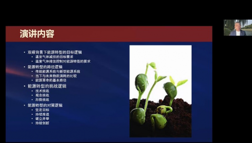 中國能源研究會常務理事、紅杉中國投資合伙人李俊峰通過視頻演講的形式,從雙碳背景下能源轉型的目標邏輯、路徑邏輯、挑戰邏輯、對策邏輯等多個方面著手,分析了《能源綠色轉型的邏輯》。