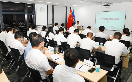 圖為公司紀(jì)委書記牛春忠在為優(yōu)訓(xùn)營學(xué)員及近三年新入職員工開展廉潔文化講座。