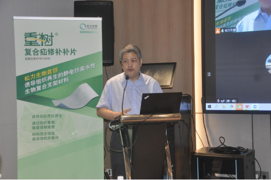 松力生物聯合創始人、副總經理楊莉分享了松力生物的軟組織誘導性生物材料的研究進展,她介紹稱,松力生物可再生復合疝修補補片由松力生物自主研發的靜電紡親水性軟組織誘導性生物材料制成,此外,分享了這種新型復合生物材料在動物實驗中成功誘導骨骼肌、韌帶、肩袖、子宮壁、腸壁組織再生的研究成果。