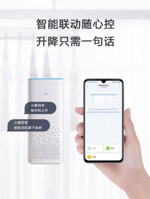 傳統(tǒng)式晾衣架費(fèi)力又費(fèi)時(shí),米家智能晾衣機(jī)不僅能夠解放雙手,讓晾衣輕松又有趣。在操控上既可以使用無(wú)線遙控器來(lái)實(shí)現(xiàn)晾衣機(jī)的升、降、照明,還可以使用米家App智能控制與小愛語(yǔ)音控制,通過(guò)手機(jī)即可實(shí)現(xiàn)升、降、暫停、照明等操作。米家是智能互聯(lián)的時(shí)代弄潮兒,晾衣機(jī)可以隨心聯(lián)動(dòng)米家平臺(tái)智能家居,洗衣機(jī)洗好,晾衣機(jī)就已經(jīng)就位。懂你,越來(lái)越懂你。