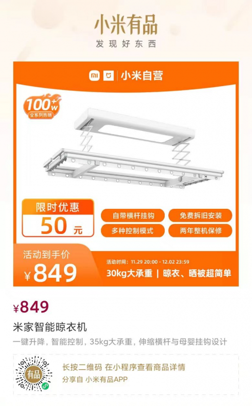 2022年最新戰(zhàn)報(bào)出爐!米家智能晾衣機(jī)銷量突破百萬(wàn)臺(tái)