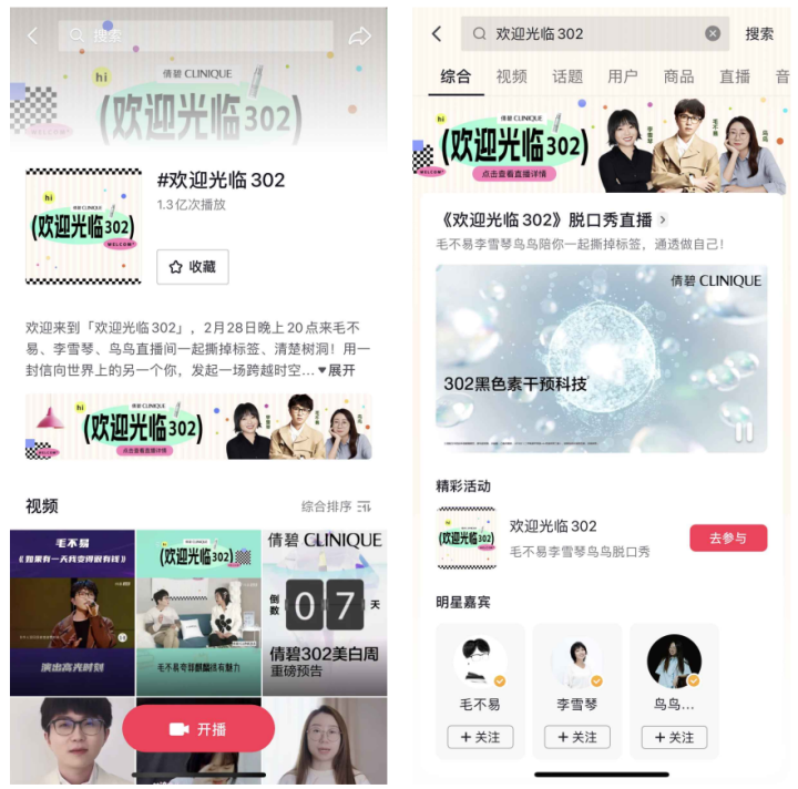 通過本次創新綜藝IP《歡迎光臨302》的人群洞察點與互動內容,倩碧的產品特性與品牌主張得到廣泛傳遞,在潛力用戶心中留下獨特一隅,也讓忠實用戶產生更深層的價值認可,以此塑造了擁有印象區隔化的產品效應。