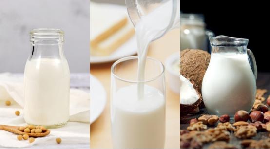 營養(yǎng)才是最終歸宿 一般來說,植物奶是指用含蛋白質(zhì)和脂肪的植物種子(如大豆、核桃、花生等)或果實(shí)(如椰子等)通過浸泡、研磨、高壓均質(zhì)等步驟制成的飲品。為了達(dá)到類似于“牛奶”的顏色和質(zhì)地,部分制造商會在植物奶的制作過程中加入一些乳化劑使其形態(tài)盡可能相似。相比牛奶而言,植物奶對于牛奶蛋白過敏、乳糖不耐受、體重管理、膳食限制人群更友善。從產(chǎn)品成分和功能上看,植物奶因其不含膽固醇、乳糖、脂肪含量低、能量相對較低、粗纖維等健康優(yōu)勢一度被視為動物奶的最佳替代品。