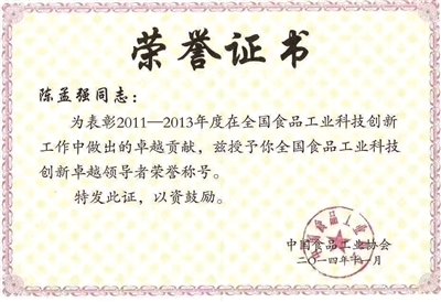 1987年,陳孟強參與起草了《保國際金牌奪國際金獎》的專題報告,并在全國輕工行業工作會議上進行了匯報。