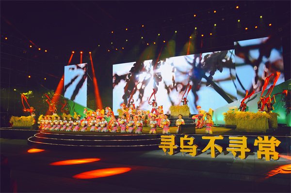 尋烏還是具有光榮革命傳統(tǒng)的紅色故土、革命老區(qū)。節(jié)目現(xiàn)場(chǎng),情景演繹《大美尋烏》以祖孫對(duì)話(huà)、導(dǎo)游講解、視頻展示等形式,帶觀(guān)眾身臨其境地體驗(yàn)了壯美秀麗的東江源、古色古香的大夫第和彰顯紅色精神的“一館七址”。具有光榮革命傳統(tǒng)的尋烏人民,銘記歷史,感恩奮進(jìn),凝聚智慧,勇于擔(dān)當(dāng),砥礪前行,奮力譜寫(xiě)尋烏高質(zhì)量發(fā)展新篇章,描繪了一幅尋烏社會(huì)主義現(xiàn)代化建設(shè)新畫(huà)卷!歡歌笑語(yǔ)唱盛世,一首《尋烏不尋常》更是唱出尋烏人民勤勞奮進(jìn)、追尋美好生活的幸福愿景!