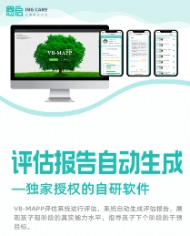評估環節 評估報告自動生成!使用獨家授權的自研軟件——VB-MAPP評估系統進行評估,系統自動生成評估報告,展現孩子現階段的真實能力水平,指導孩子下個階段的干預目標。
