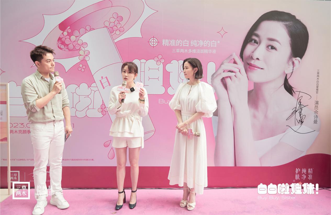 近期,在武漢江漢路的三草兩木品牌旗艦店舉行了一場《白白啦!姐妹》的特別專場直播和剪彩儀式。在剪彩儀式現場,TVB雙料視后、中國香港著名演員佘詩曼驚喜亮相并傾情介紹了三草兩木的美白新品——多維淡斑精華液(以下:簡稱白晶瓶),受到現場觀眾的一致好評,三草兩木的品牌熱度再度飆升。