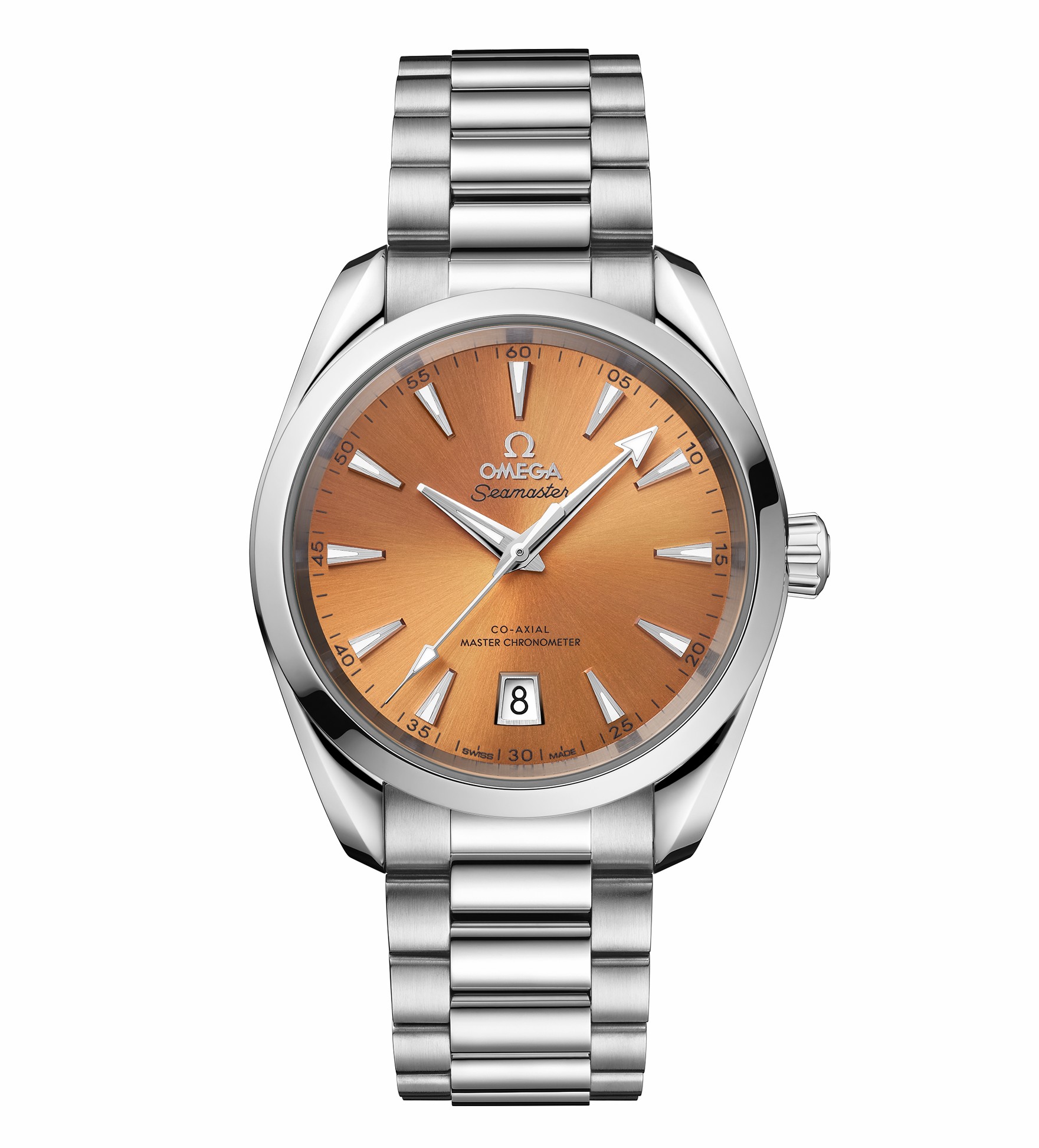 海馬系列 Aqua Terra 150米38毫米至臻天文臺表采用對稱設(shè)計,表殼和表冠均以拋光精鋼材質(zhì)打造,表背采用波紋邊緣設(shè)計。6點位設(shè)有日歷窗,鍍銠指針和小時刻度均覆有白色 Super-LumiNova 夜光涂層。不銹鋼表鏈采用精美的圓弧形鏈節(jié),經(jīng)拋光和拉絲處理。內(nèi)部搭載歐米茄8800至臻天文臺機(jī)芯,通過由瑞士聯(lián)邦計量研究院(METAS)核準(zhǔn)的至臻天文臺認(rèn)證,其精準(zhǔn)度、防磁性和整體性能均達(dá)到行業(yè)的更高標(biāo)準(zhǔn)。其表盤由黃銅制成,經(jīng)過漆面處理,由中央向四周呈現(xiàn)出太陽射線的打磨效果。各種色彩中,橘黃色古典氣息十足,雅致而沉穩(wěn)。砂巖色樸實無華,屬于低調(diào)而休閑的實力派。