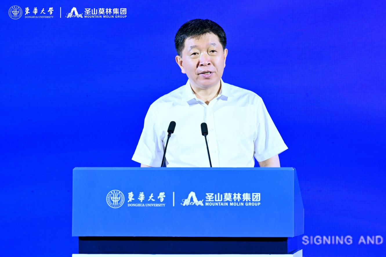 中國工程院院士、東華大學校長俞建勇出席儀式并致辭,他表示,東華大學是新中國成立的第一所紡織高等學府,也是教育部直屬、國家“211 工程”、國家“雙一流”建設高校。五糧液集團是“全球規(guī)模最大、生態(tài)環(huán)境最佳”和“最有價值品牌”特大型現(xiàn)代企業(yè),圣山莫林集團作為五糧液集團多元板塊子集團,深耕紡織服裝行業(yè),積極服務地方經濟發(fā)展。此次東華大學與圣山莫林集團合作設立聯(lián)合創(chuàng)新中心,是貫徹落實黨的二十大對教育、科技、人才工作統(tǒng)籌部署的重要舉措,是雙方深化科教融合、產教融合,搶抓機遇、共謀發(fā)展的新思路與新探索,是雙方“情相融”“力相聚”,互惠共贏、共謀發(fā)展的新起點。希望雙方以共建“東華大學-圣山莫林集團聯(lián)合創(chuàng)新中心”為契機,充分發(fā)揮東華大學在紡織、材料等前沿領域的研發(fā)和創(chuàng)新優(yōu)勢以及圣山莫林集團的市場和資金優(yōu)勢,在時尚設計、面料開發(fā)、服裝研發(fā)、成果轉化以及畢業(yè)生就業(yè)等方面開展更高層次的交流與合作,合力譜寫校企合作、產教融合的新篇章。
